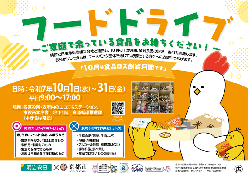 「フードドライブ」を明治安田生命保険(相)京都支社との連携で実施します。